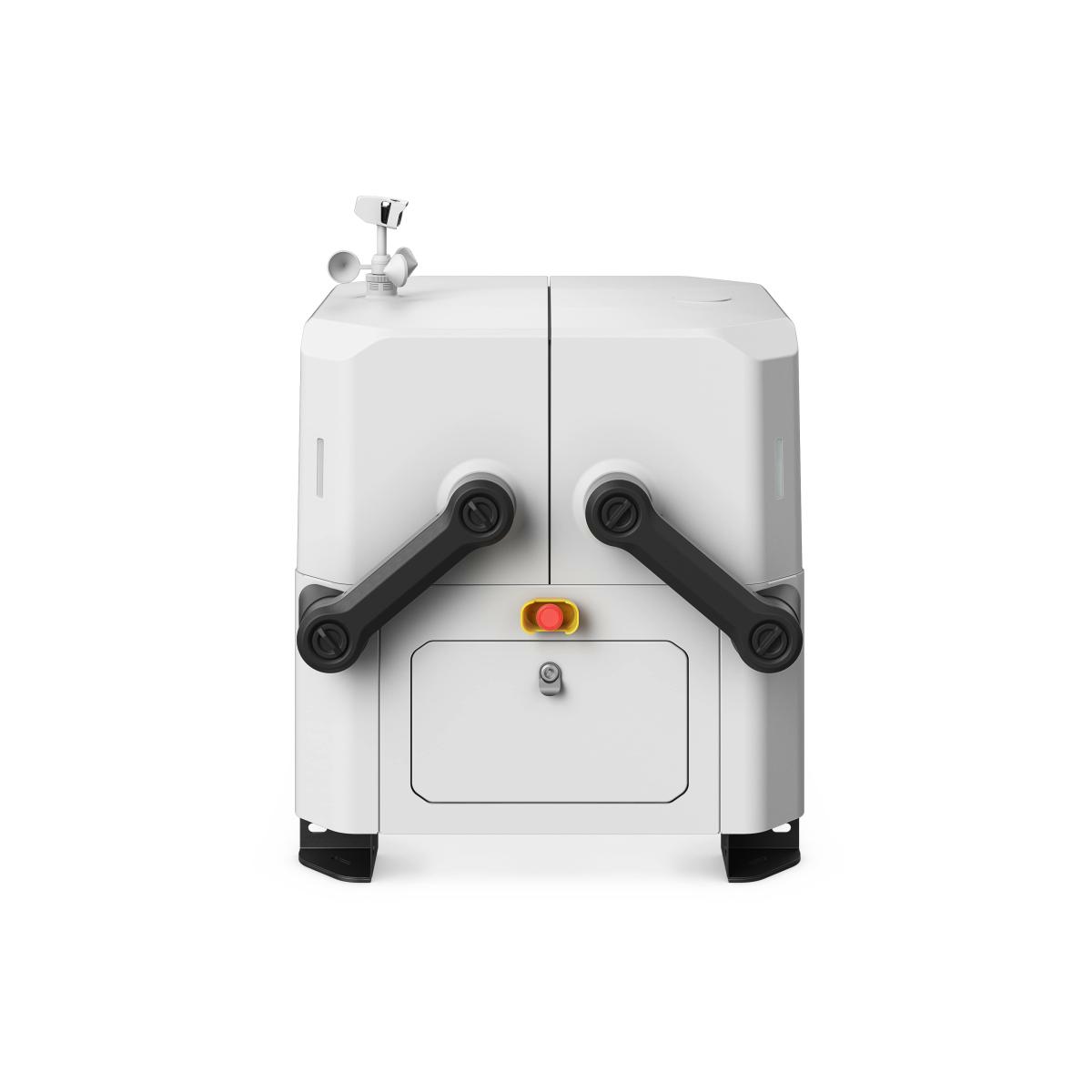 DJI Dock весят менее 100 кг и занимают площадь менее 1 кв. Для установки требуется фиксация на земле, доступ к источнику питания и Интернету, а также быстрая настройка с помощью пульта дистанционного управления DJI RC Plus.
